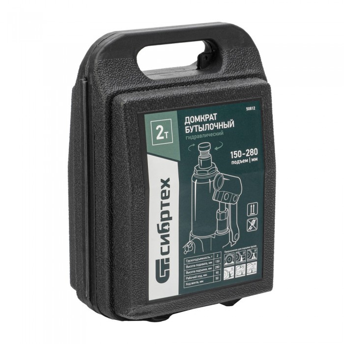 Домкрат гидравлический бутылочный, 2 т, 150-280 мм, в пласт. кейсе Сибртех