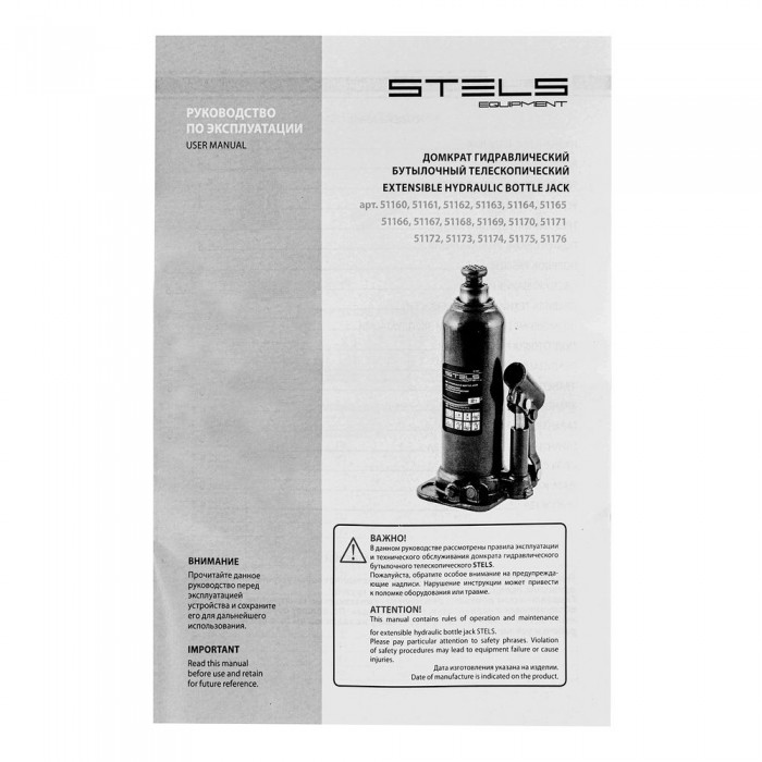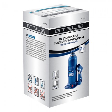 Домкрат гидравлический бутылочный, 2 т, h подъема 178-338 мм Stels