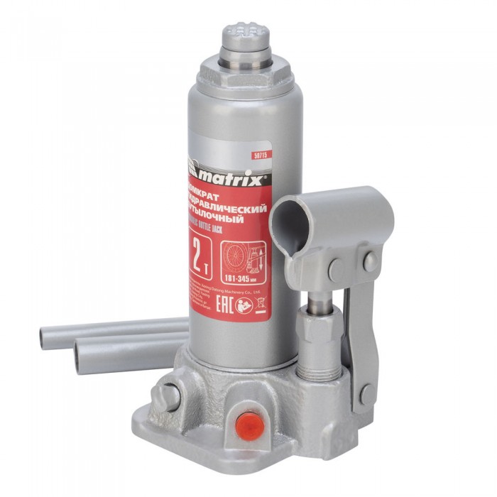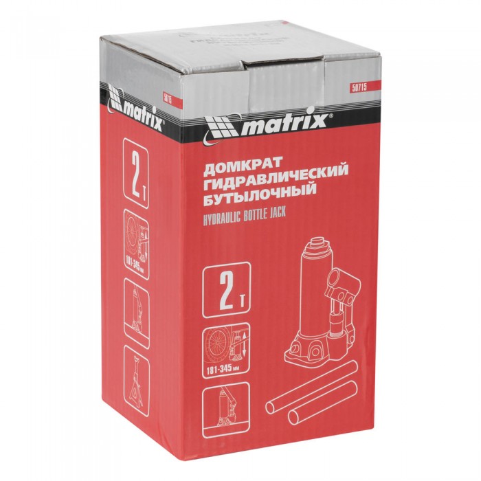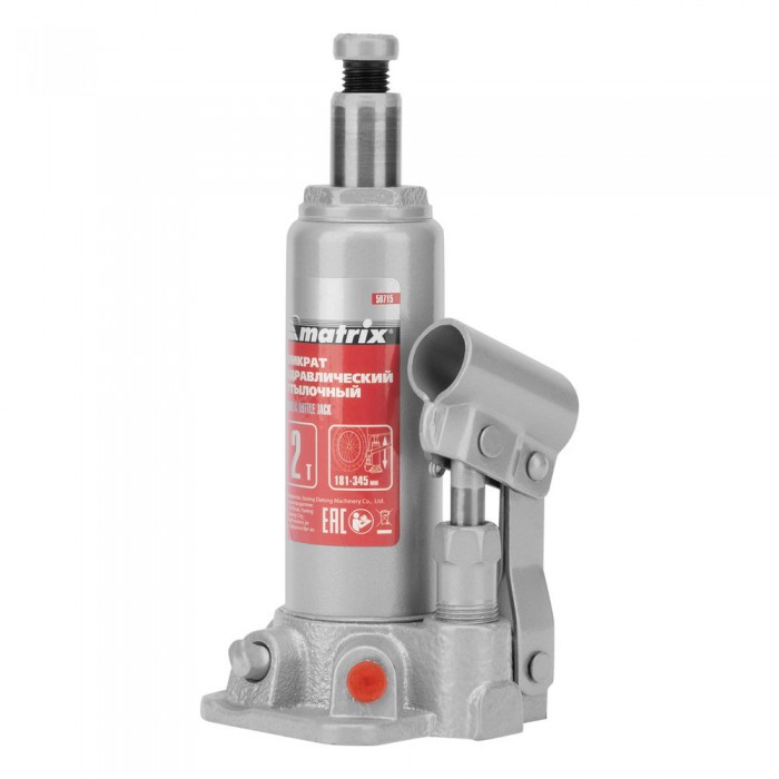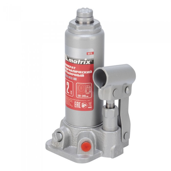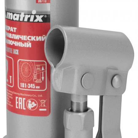 Домкрат гидравлический бутылочный, 2 т, высота подъема 181-345 мм Matrix