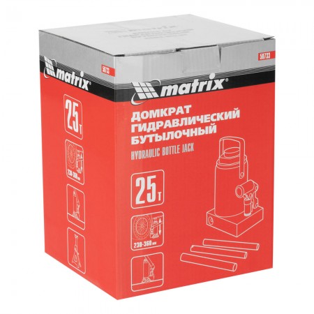 Домкрат гидравлический бутылочный, 25 т, высота подъема 230-360 мм Matrix