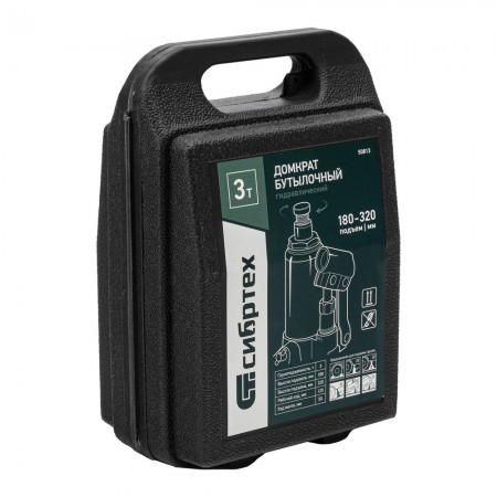 Домкрат гидравлический бутылочный, 3 т, 180-320 мм, в пласт. кейсе Сибртех