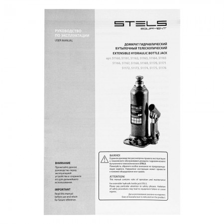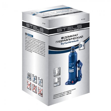 Домкрат гидравлический бутылочный, 3 т, h подъема 188-363 мм Stels