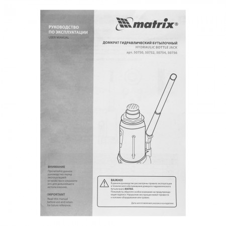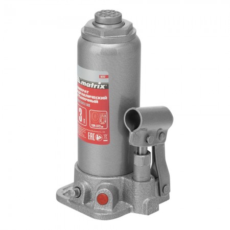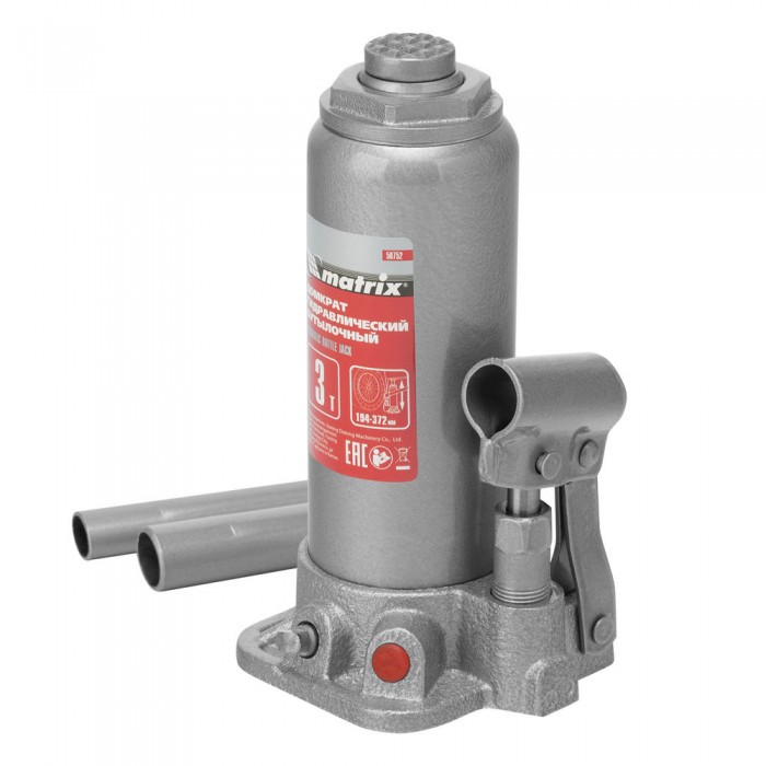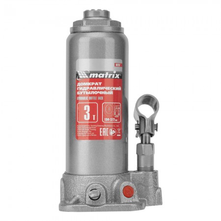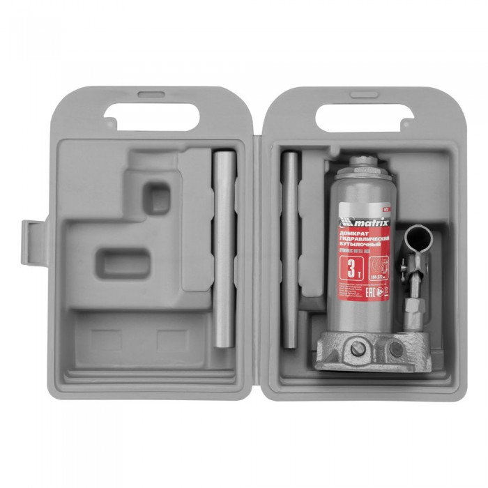 Домкрат гидравлический бутылочный, 3 т, высота подъема 194-372 мм, в пластиковый кейсе Matrix
