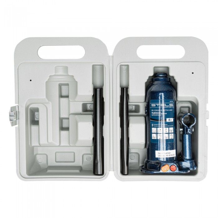 Домкрат гидравлический бутылочный, 4 т, h подъема 188-363 мм, в пластиковом кейсе Stels
