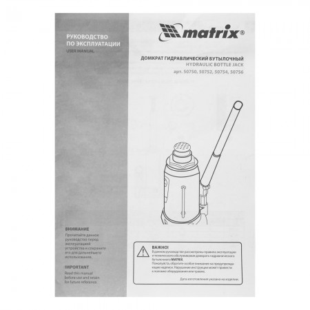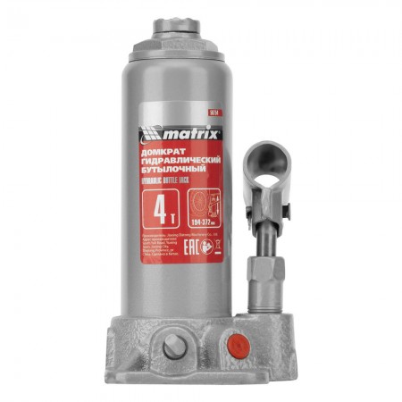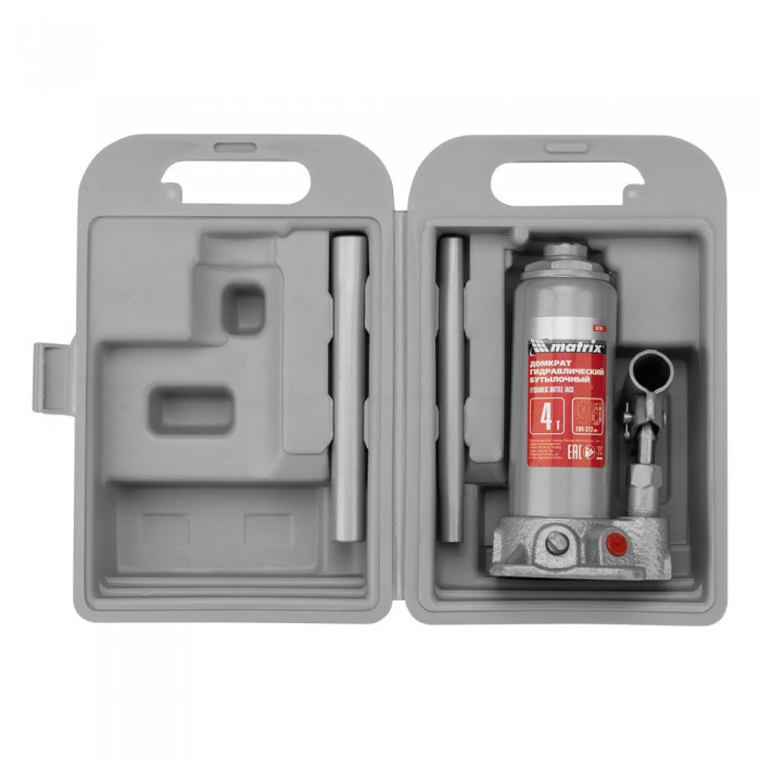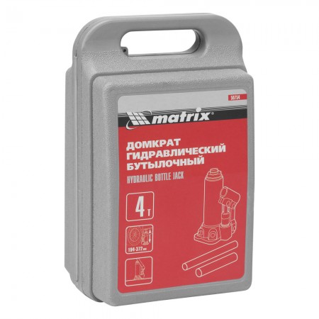 Домкрат гидравлический бутылочный, 4 т, высота подъема 194-372 мм, в пластиковый кейсе Matrix