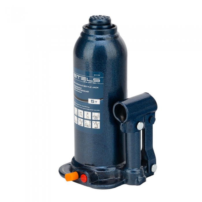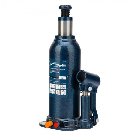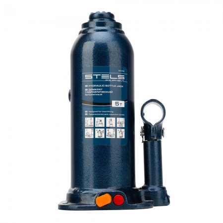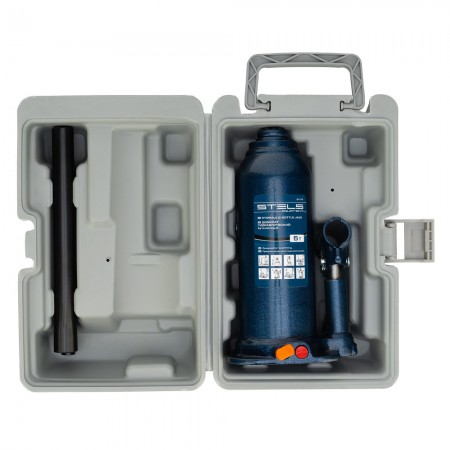 Домкрат гидравлический бутылочный, 5 т, h подъема 207-404 мм, в пластиковом кейсе Stels