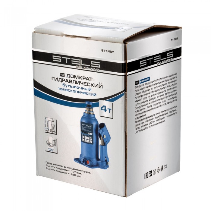Домкрат гидравлический бутылочный телескопический, 4 т, подъем 170-420 мм Stels