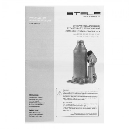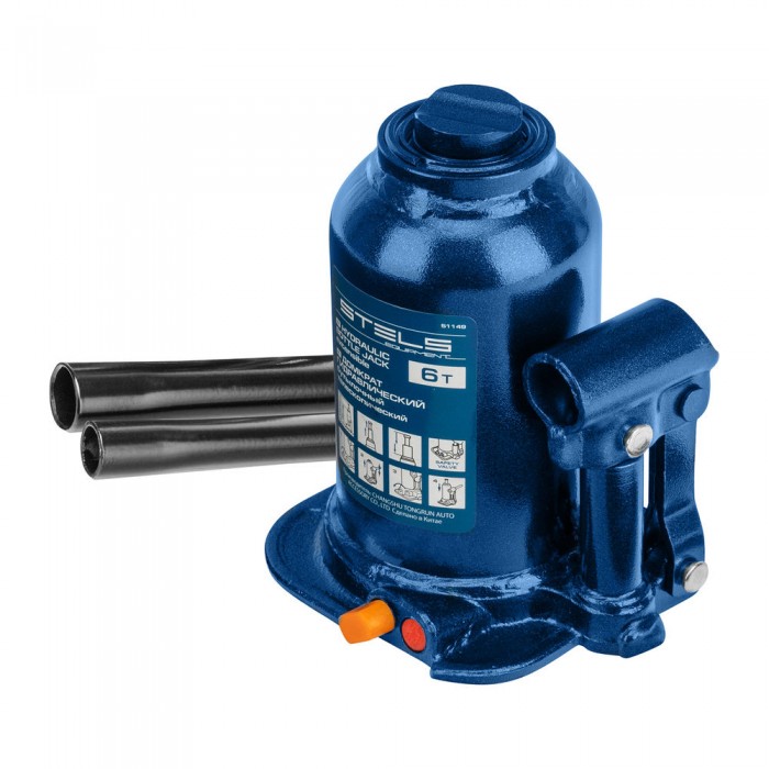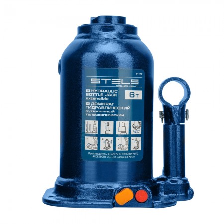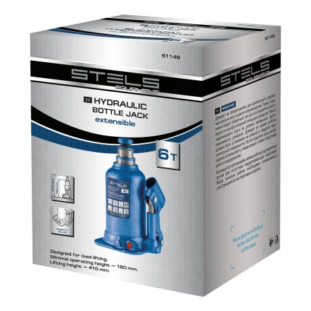 Домкрат гидравлический бутылочный телескопический, 6 т, подъем 180-410 мм Stels