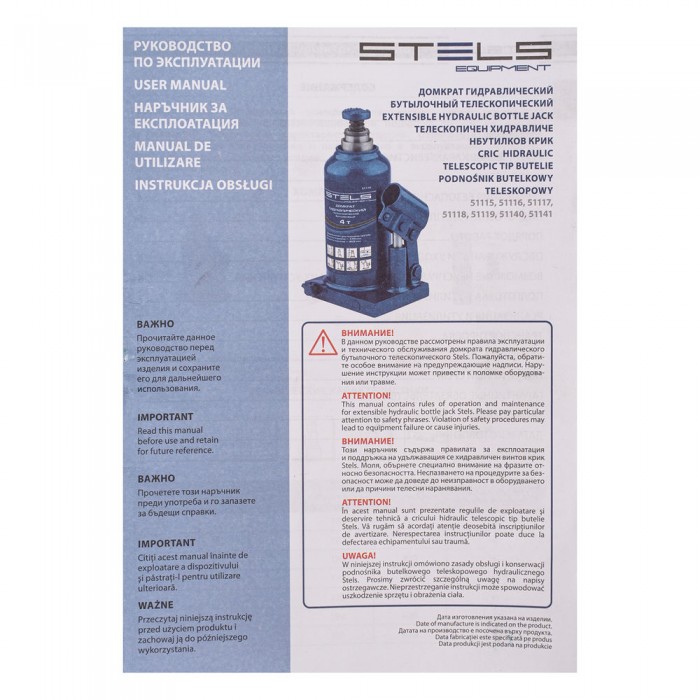 Домкрат гидравлический бутылочный телескопический, 8 т, H подъема 170-430 мм Stels