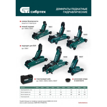 Домкрат гидравлический подкатной, 2 т, 85-330 мм, низкий подхват Сибртех