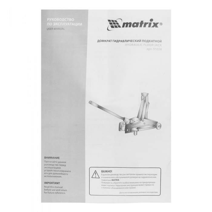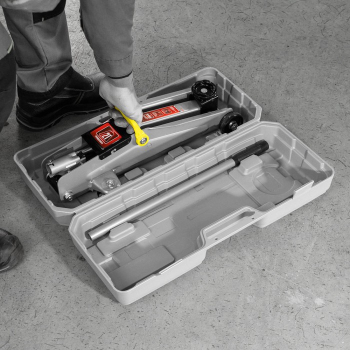 Домкрат гидравлический подкатной, 2 т, высота подъема 135-385 мм, в пластиковый кейсе Matrix
