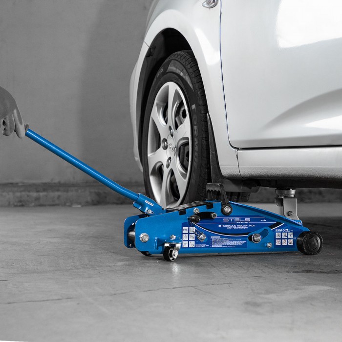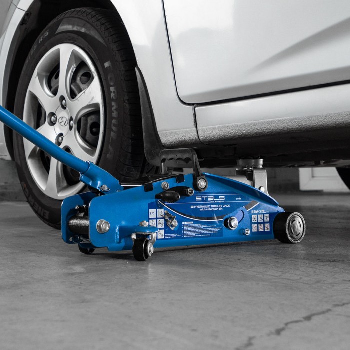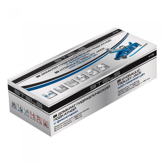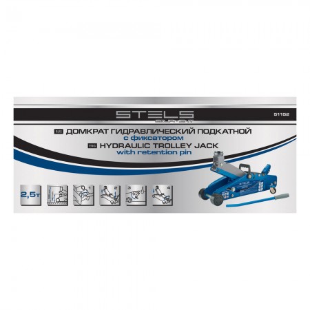 Домкрат гидравлический подкатной 2.5 т, с фиксатором, Safety Pin, 140-385 мм Stels