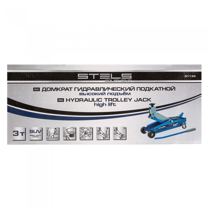 Домкрат гидравлический подкатной, высокий подъем, 3т, SUV, 190-535 мм Stels