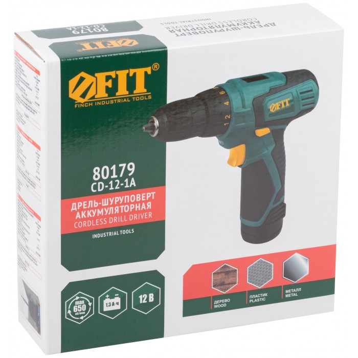 Дрель-Шуруповерт акк. 12 В; 0-650 об/мин; 15 Нм; 1 (Li-Ion) 1,3 Ач; 1 ч.; рез. накл.; коробка (80179)