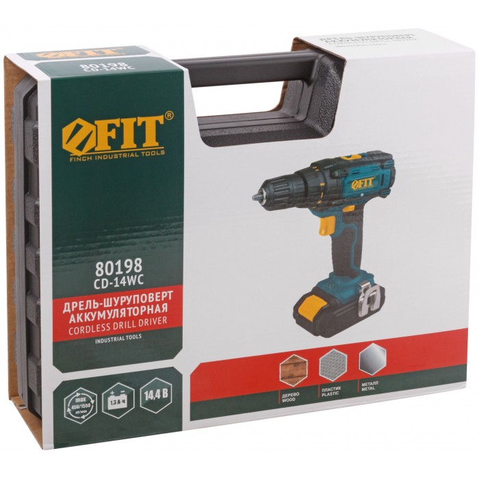 Дрель-Шуруповерт акк. 14,4 В; 0-450/1550 об/мин; 23 Нм; 2 (Li-Ion) 1,3 Ач; 1,5 ч.; рез. накл.; кейс (80198)