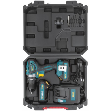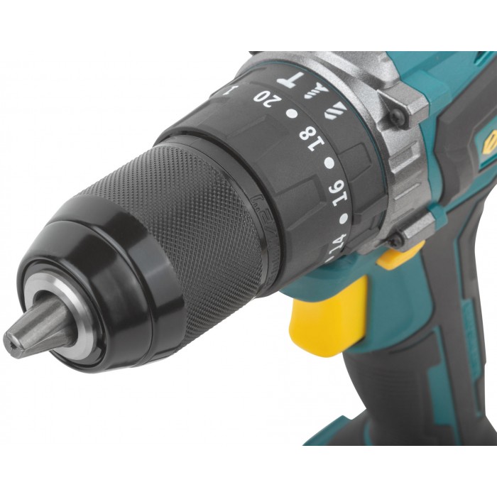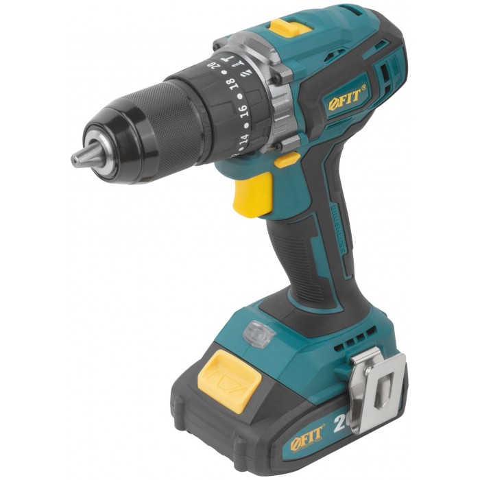 20 В; 0-400/1600 об/мин; 0-6000/24000 уд/мин; 55 Нм; патрон 1,5-13 мм; дерево/пластик/металл/бетон - 28/16/10/10 мм; Li-ion аккумуляторная батарея; 2,0 Ач; 1 ч; 1,4 кг; кейс. Бесщеточный двигатель, дополнительная аккумуляторная батарея, легкий вес аккумуляторной батареи, быстрая зарядка аккумуляторной батареи, индикатор заряда батареи, светодиодная подсветка рабочей зоны, двухскоростной планетарный редуктор, регулировка крутящего момента, регулировка частоты вращения; функция сверления, функция сверления с ударом, блокировка шпинделя, электрический тормоз двигателя, электрический реверс, батарея с защитой от перегрева, резиновые вставки, металлическая клипса на ремень, быстрозажимной патрон, эргономическая конструкция.