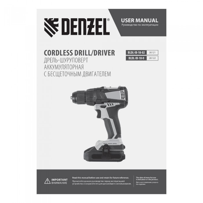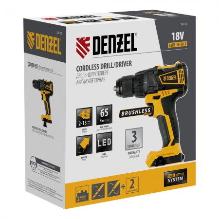 Дрель-шуруповерт аккумуляторная, бесщет. BLDL-IB-18-0, Li-Ion, 18 В Denzel (26122)