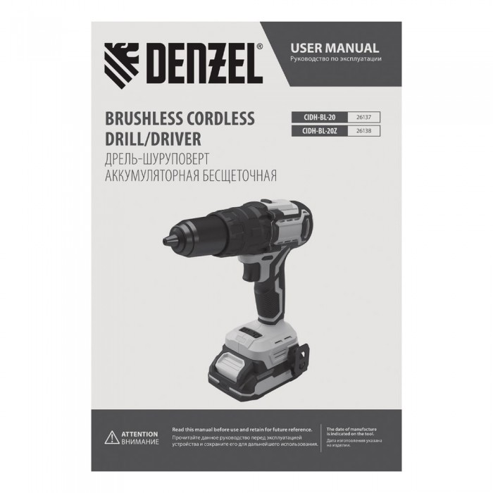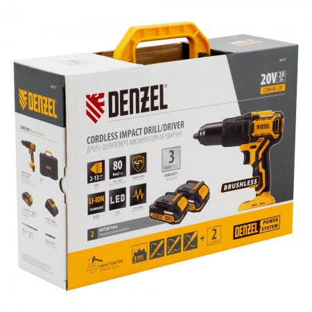 Дрель-шуруповерт аккумуляторная ударная бесщет. CIDH-BL-20, Li-Ion, 20 В// Denzel (26137)