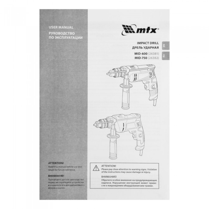 Дрель ударная MID-750, 750 Вт, 0-3000 об/мин, 0-48000 уд/мин MTX (26382)