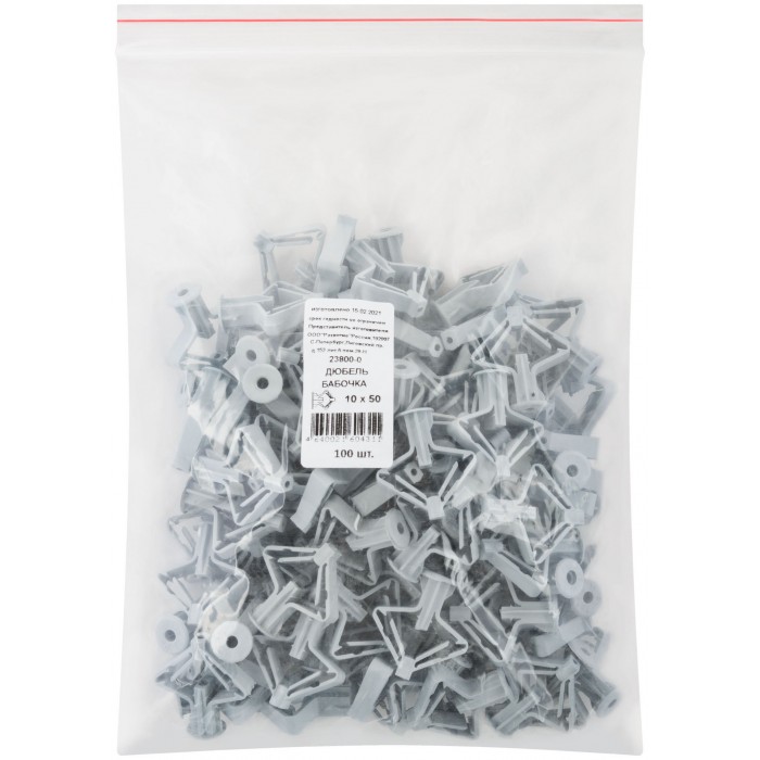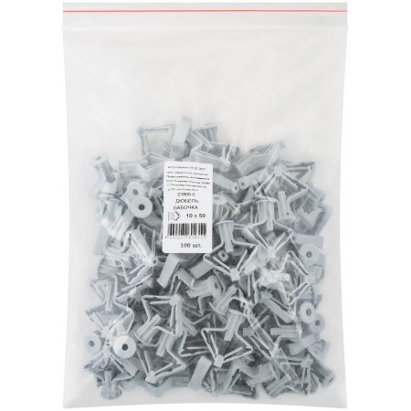 Дюбель "Бабочка" для пустотелых конструкций 10 х 50 100 шт. Фасовка (23800-0)