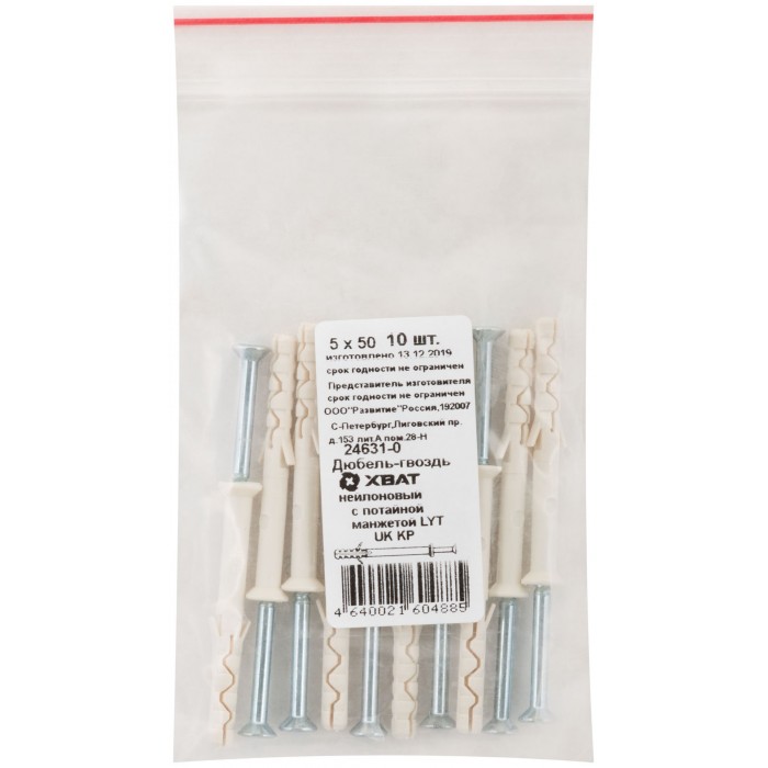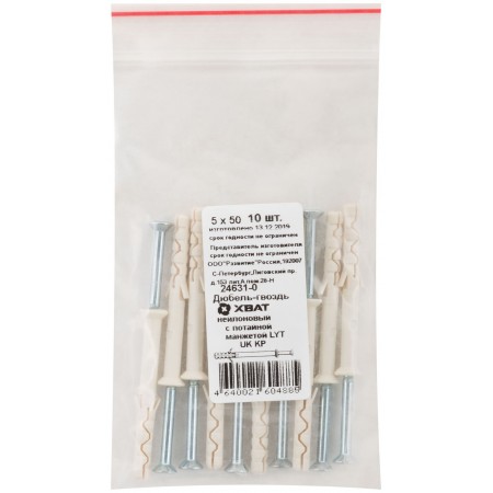 Дюбель-гвоздь нейлоновый с потайной манжетой LYT 5 х 50 UK KP, 10 шт. Фасовка (24631-0)