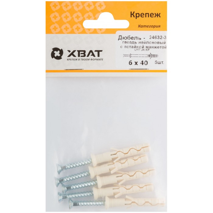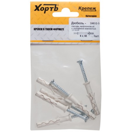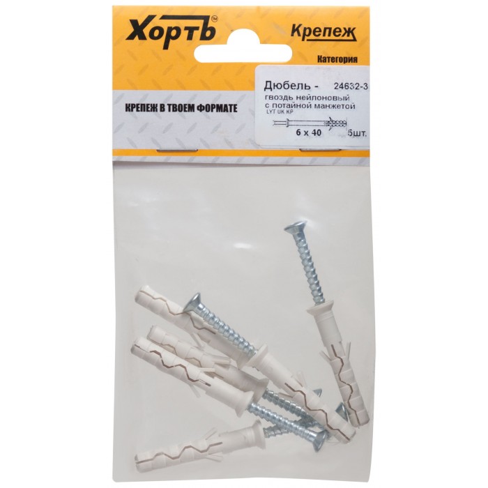 Дюбель-гвоздь нейлоновый с потайной манжетой LYT 6 х 40 UK KP (фасовка 5 шт.) (24632-3)