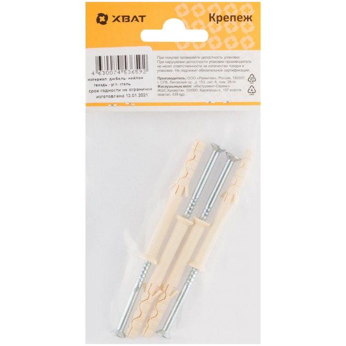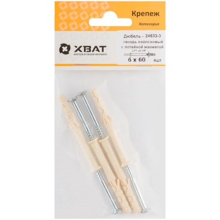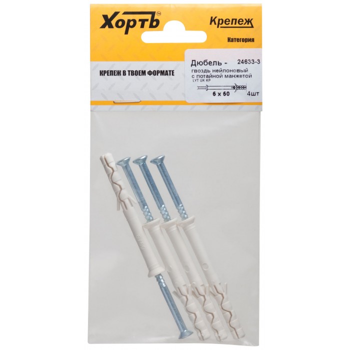 Дюбель-гвоздь нейлоновый с потайной манжетой LYT 6 х 60 UK KP (фасовка 4 шт.) (24633-3)