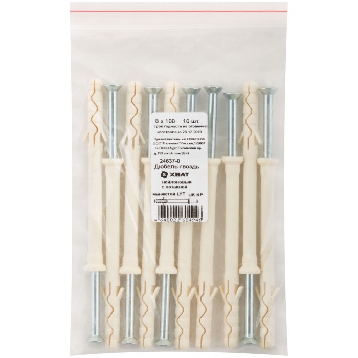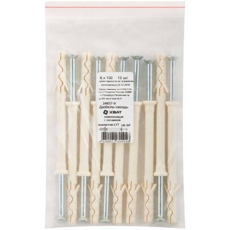 Дюбель-гвоздь нейлоновый с потайной манжетой LYT 8 х 100 UK KP, 10 шт. Фасовка (24637-0)