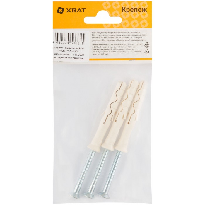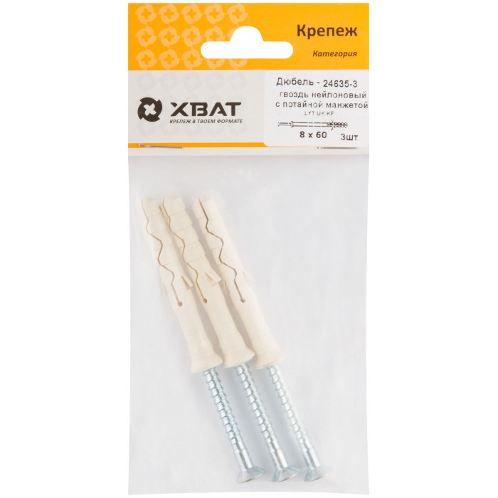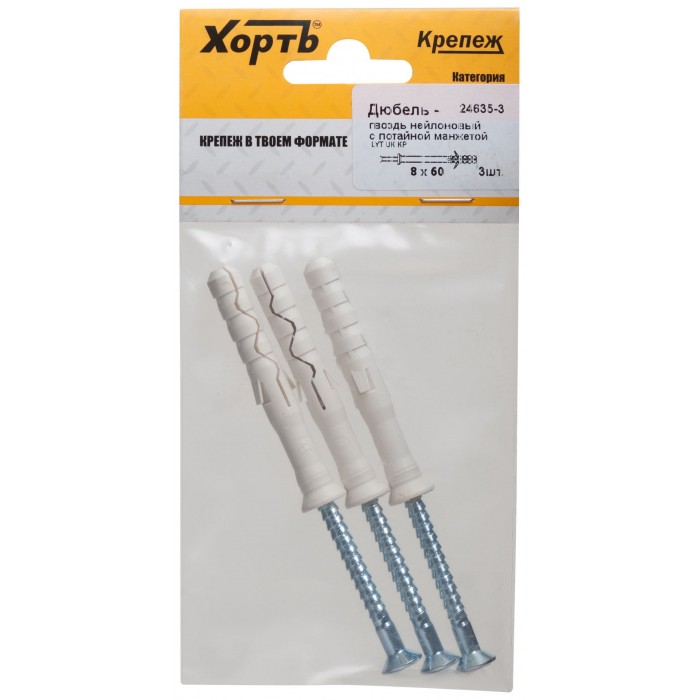 Дюбель-гвоздь нейлоновый с потайной манжетой LYT 8 х 60 UK KP (фасовка 3 шт.) (24635-3)