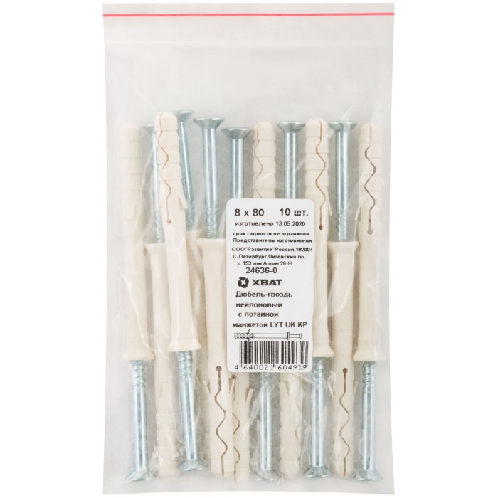 Дюбель-гвоздь нейлоновый с потайной манжетой LYT 8 х 80 UK KP, 10 шт. Фасовка (24636-0)