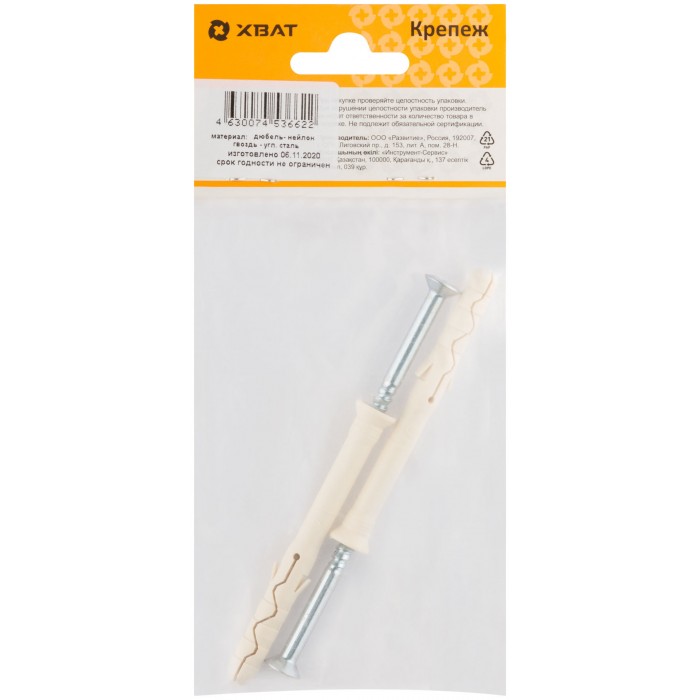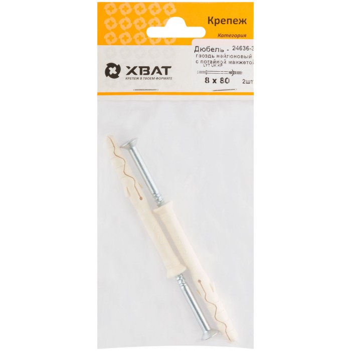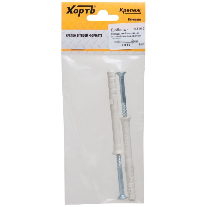 Дюбель-гвоздь нейлоновый с потайной манжетой LYT 8 х 80 UK KP (фасовка 2 шт.) (24636-3)