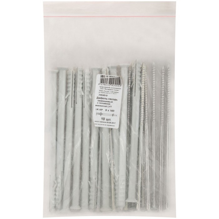Дюбель-гвоздь нейлоновый с потайной манжетой LYT UK KP 8 х 160, 10 шт Фасовка (24640-0)