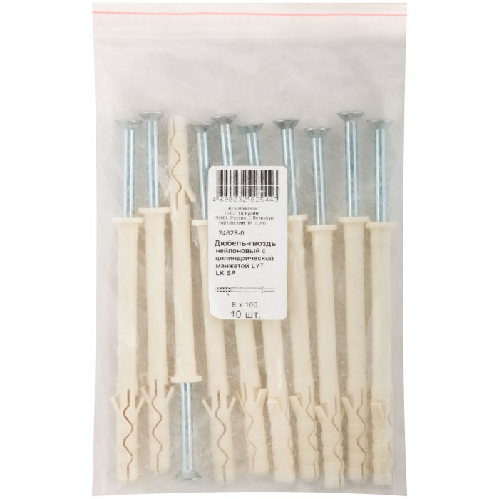 Дюбель-гвоздь нейлоновый с цилиндрической манжетой LYT 8 х 100 LK SP, 10 шт. Фасовка (24628-0)