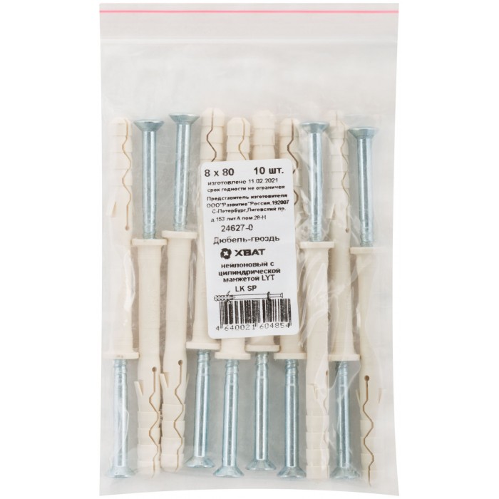 Дюбель-гвоздь нейлоновый с цилиндрической манжетой LYT 8 х 80 LK SP, 10 шт.( Фасовка) (24627-0)