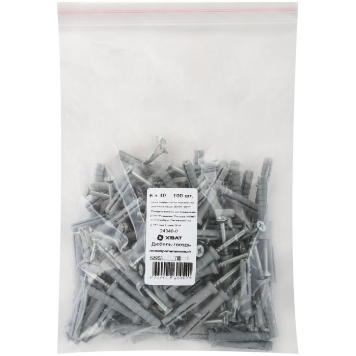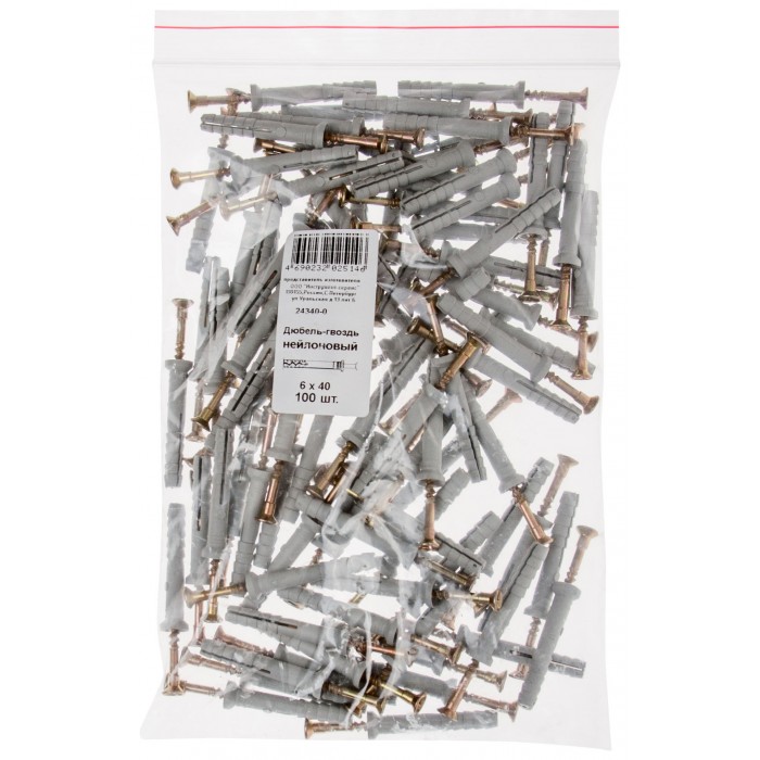 Дюбель-гвоздь полипропиленовый 6 х 40 100 шт (Фасовка) (24340-0)