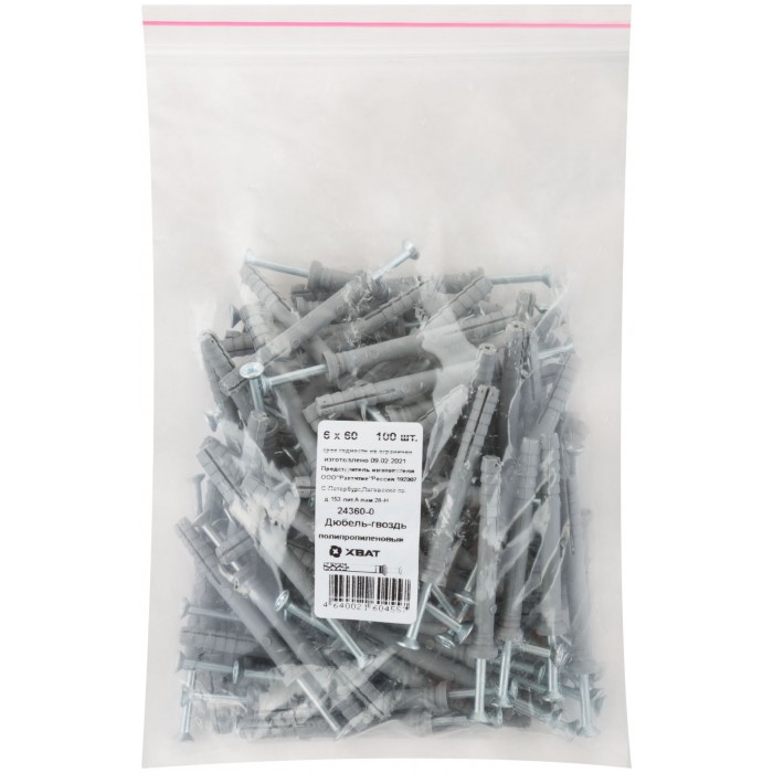 Дюбель-гвоздь полипропиленовый 6 х 60 100 шт (Фасовка) (24360-0)