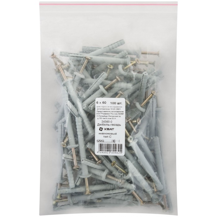 Дюбель-гвоздь полипропиленовый 6 х 60 тип С 100 шт (Фасовка) (24560-0)