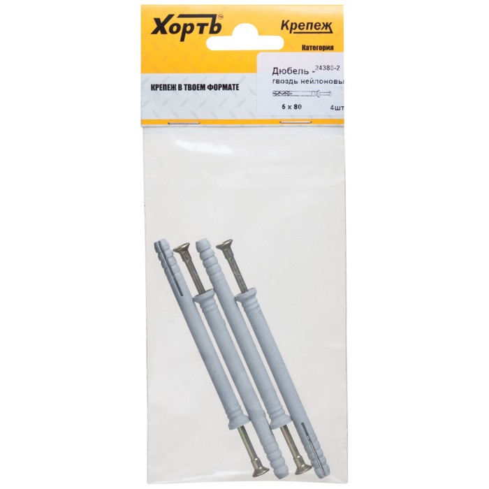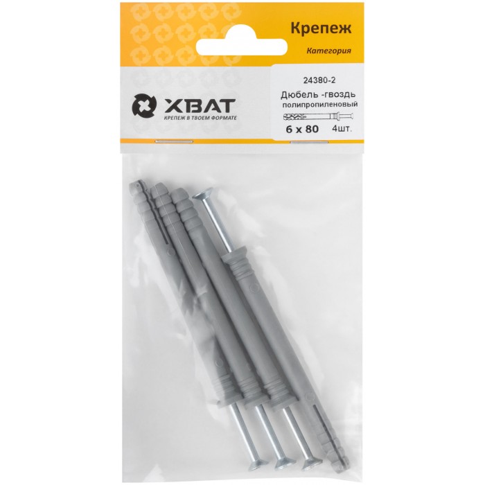 Дюбель-гвоздь полипропиленовый 6 х 80 ( фасовка 4 шт.) (24380-2)