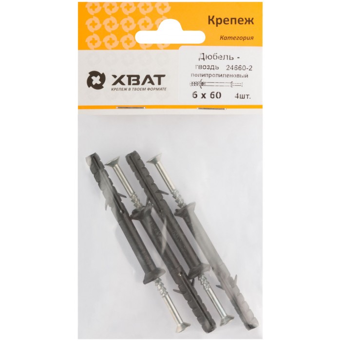 Гвоздь изготовлен из стали, оцинкованый или жёлтопассивированный, дюбель с потайной манжетой изготовлен из полипропилена. Отличаются высокой скоростью монтажа. Для крепления различных конструкций, тонколистовой стали, деревянных деталей (рамы, стеновые профили, плинтусы, настенные уголки и др.) к бетонному или кирпичному основанию, к пенобетону или полнотелым материалам.