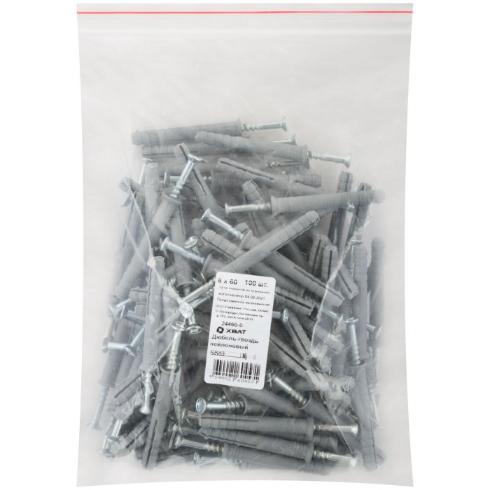 Дюбель-гвоздь полипропиленовый 8 х 60 100 шт (Фасовка) (24460-0)