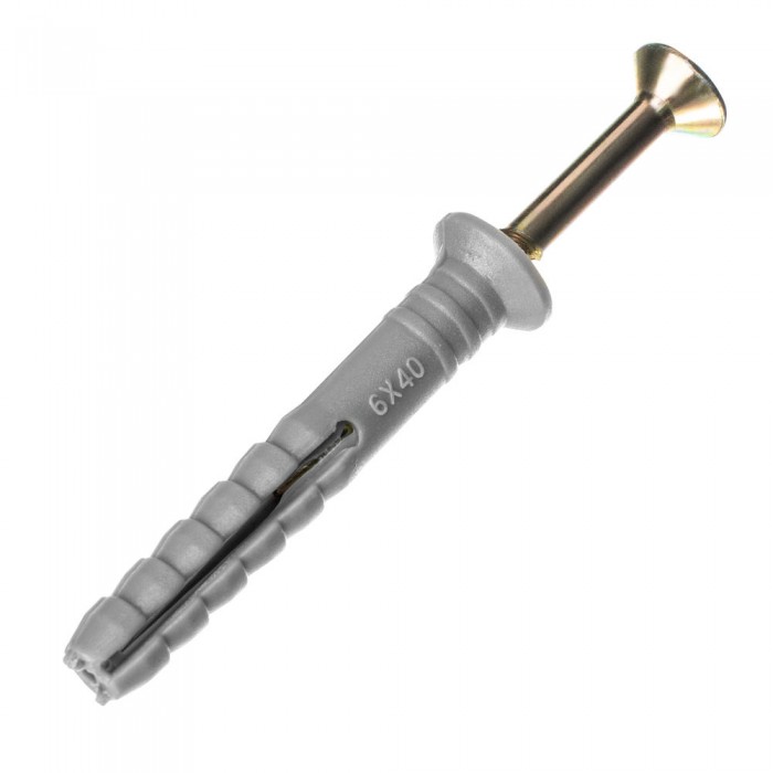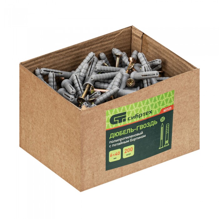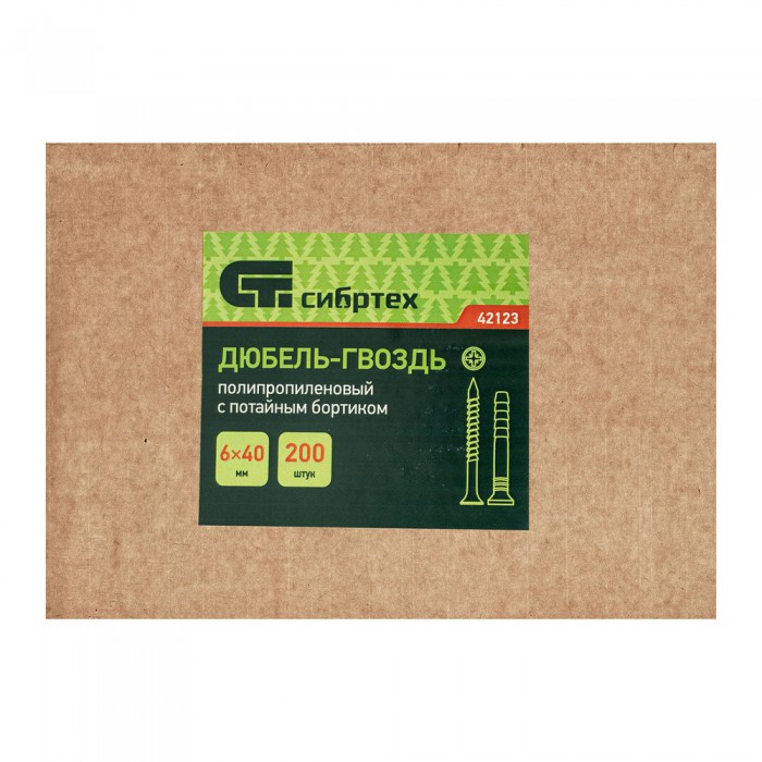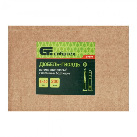 Дюбель-гвоздь полипропиленовый с потайным бортиком 6 х 40 мм, 200 шт Сибртех (42123)