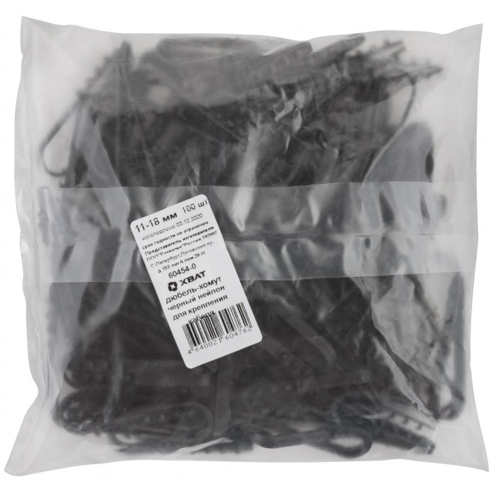 Дюбель-хомут для крепления кабеля 11-18 мм черный, 100 шт (фасовка) (60454-0)