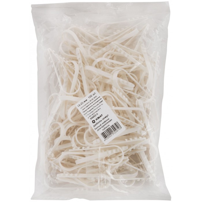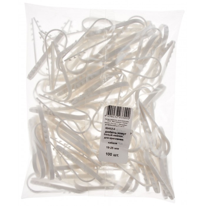 Дюбель-хомут для крепления кабеля 19-25 мм белый (нейлон), 100 шт (фасовка) (60452-0)