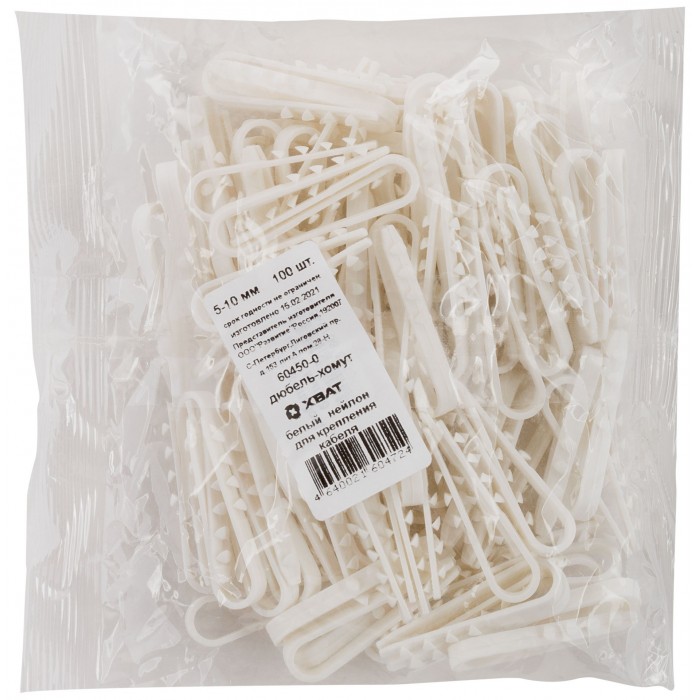 Дюбель-хомут для крепления кабеля 5-10 мм белый (нейлон), 100 шт (фасовка) (60450-0)