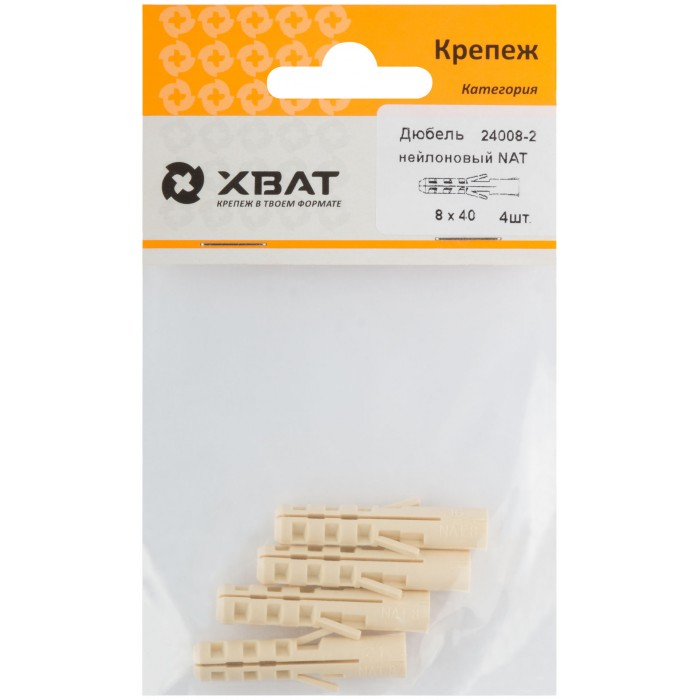 Дюбель нейлоновый NAT 8 х 40 (фасовка 4 шт.) (24008-2)
