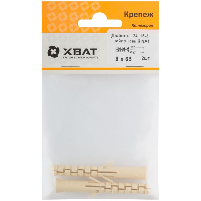 Дюбель нейлоновый NAT 8 х 65 (фасовка 2 шт.) (24115-3)