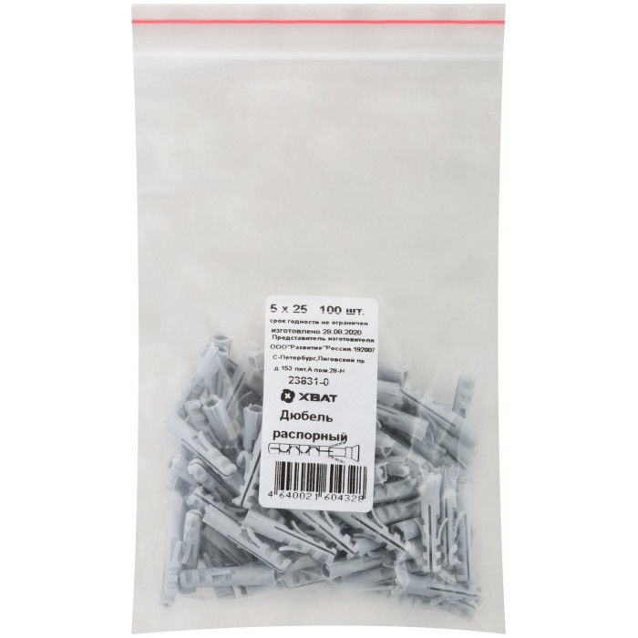 Дюбель распорный 5 х 25 100 шт. (фасовка) (23831-0)