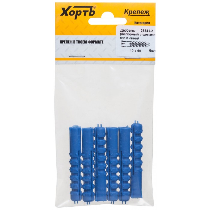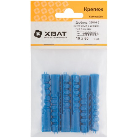 Дюбель распорный с шипами тип К синий 10 х 60 (фасовка 6 шт.) (23846-2)