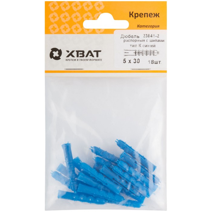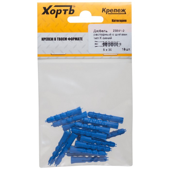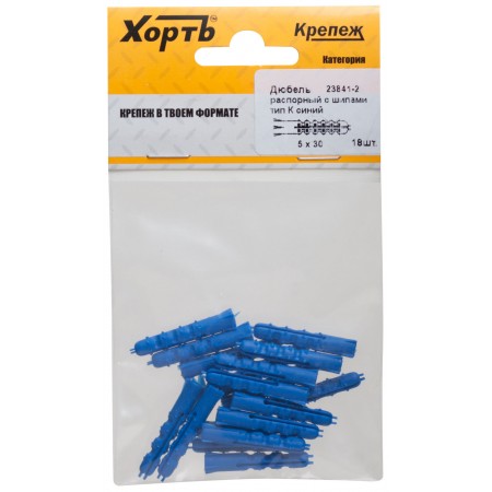 Дюбель распорный с шипами тип К синий 5 х 30 (фасовка 18 шт.) (23841-2)