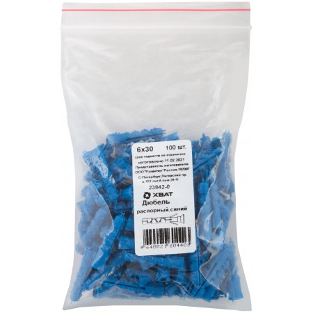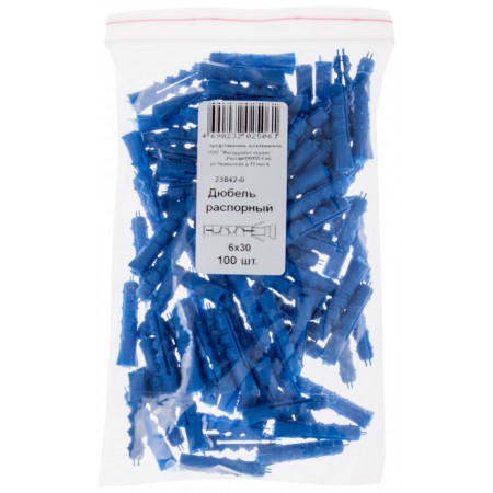 Дюбель распорный с шипами тип К синий 6 х 30 100 шт.(фасовка) (23842-0)